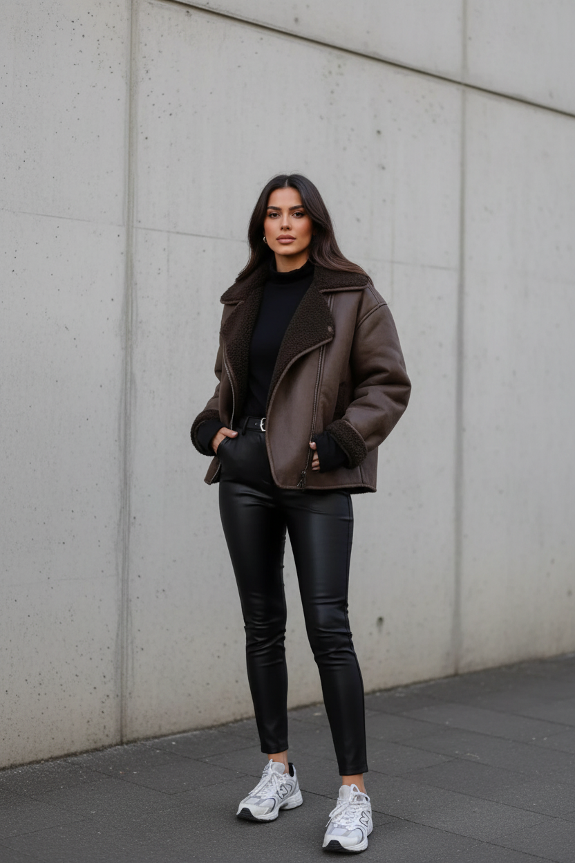"Calidad increíble por el precio. Parece una chaqueta de €150. El forro abriga de verdad y el cuero sintético es impecable."
