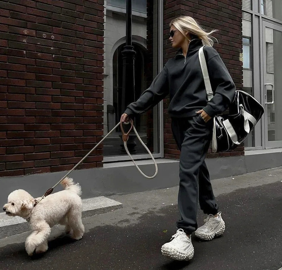 Tu nuevo aliado para el estilo Urbano de Otoño e Invierno. Este conjunto está diseñado para un ajuste holgado y relajado en ambas piezas, ofreciendo la máxima comodidad sin perder el estilo.
