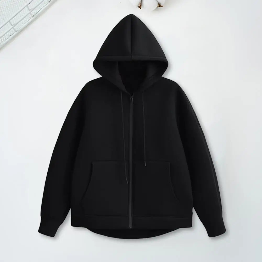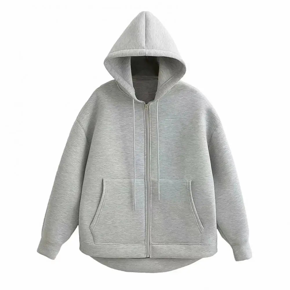 Funcionalidad: Cierre de cremallera frontal completa, lo que permite llevarla abierta o cerrada. Incluye una capucha amplia y dobles bolsillos laterales.